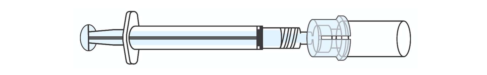 2. When as much of the powder as possible is at the bottom, remove the blue applicator and attach the adapter by screwing it onto the tip.