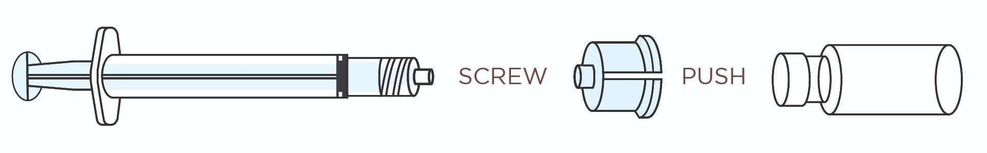 1. Hold the syringe upright with the blue applicator on top and pull back the syringe end to create a little space.